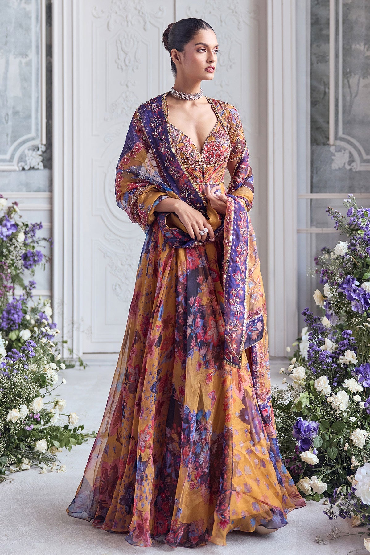 'Avaia' is from Fanah collection by Mahima Mahajan. EMBROIDERED CHOLI CUT ANARKALI PAIRED WITH EMBROIDERED DUPATTA