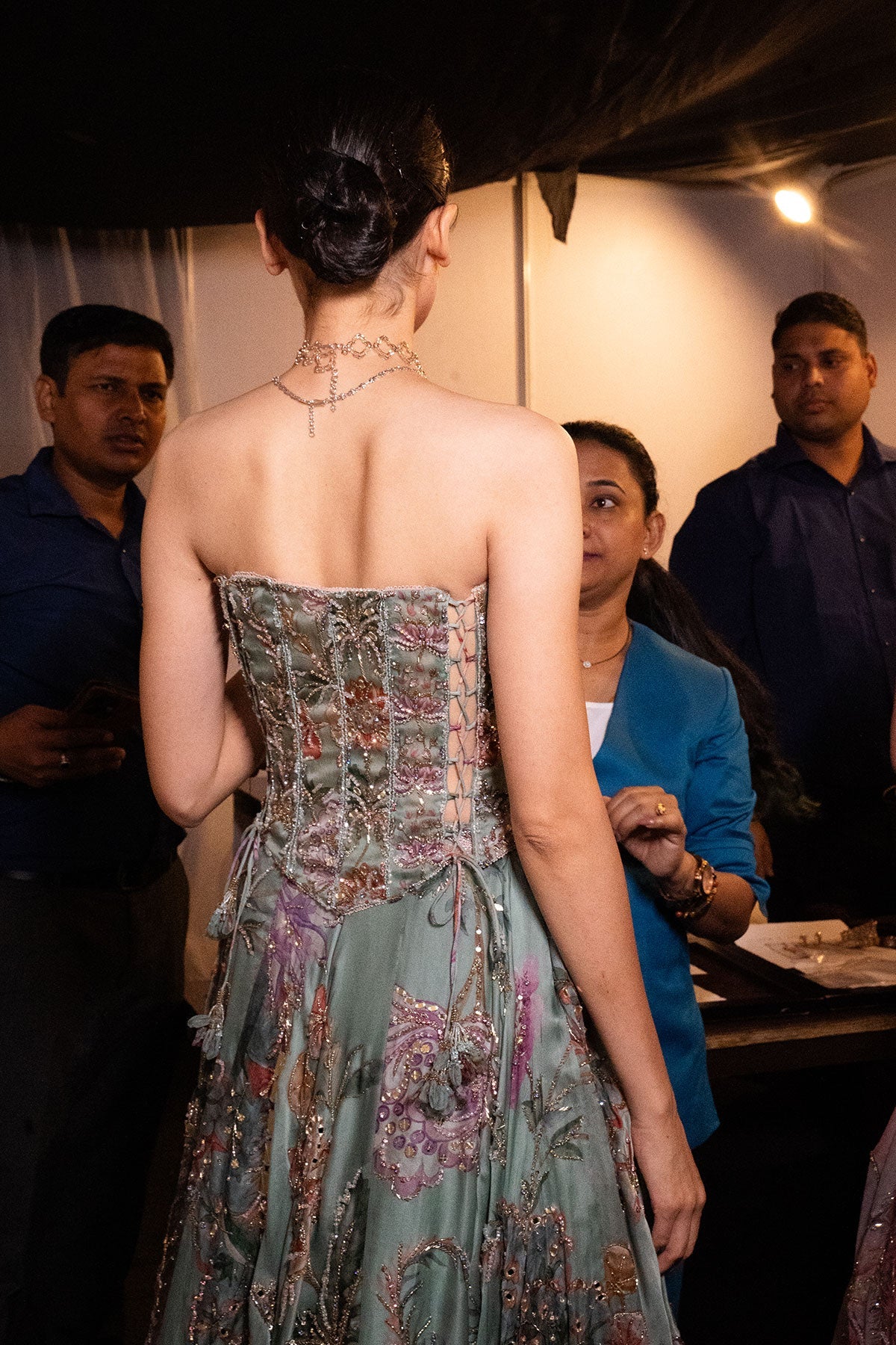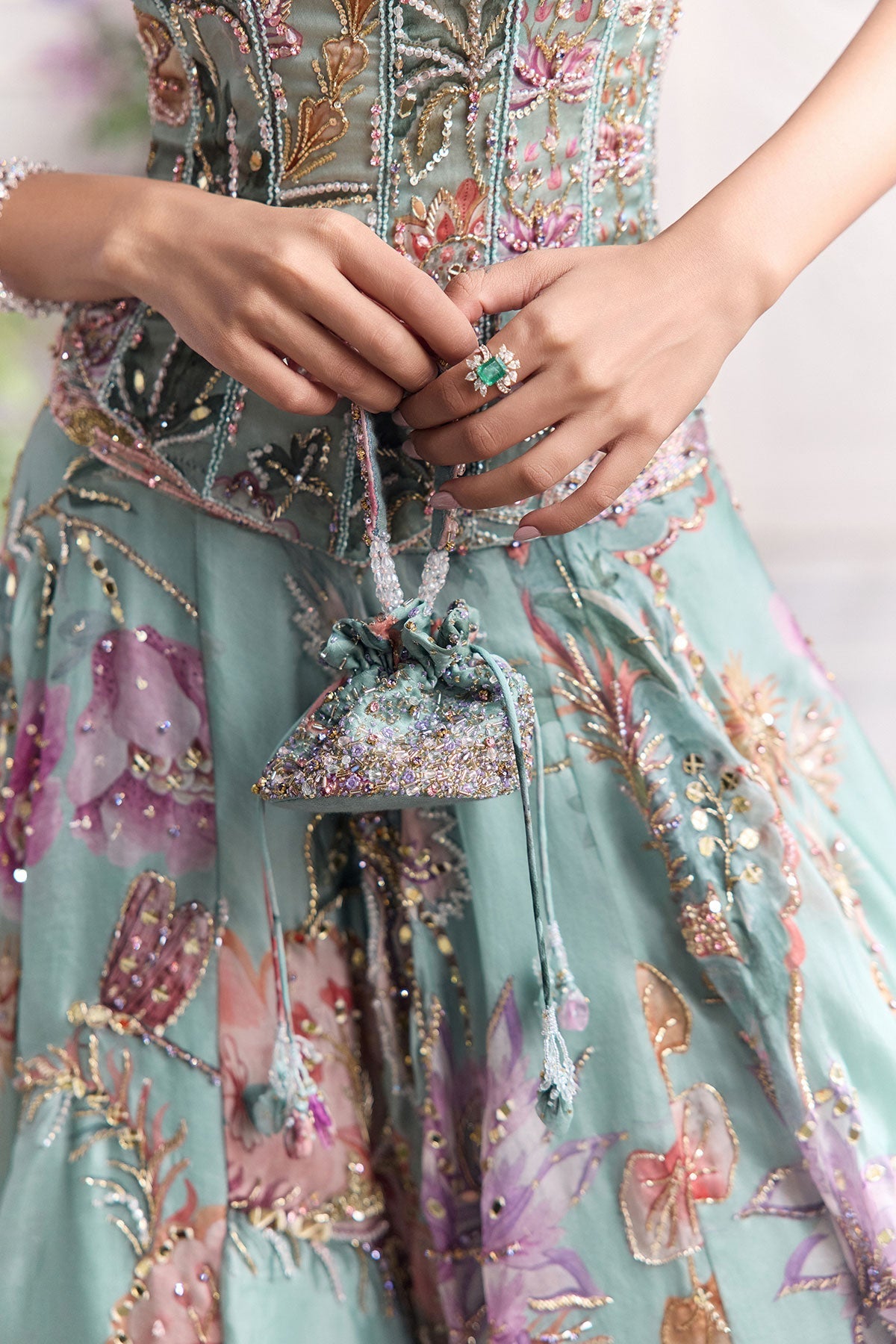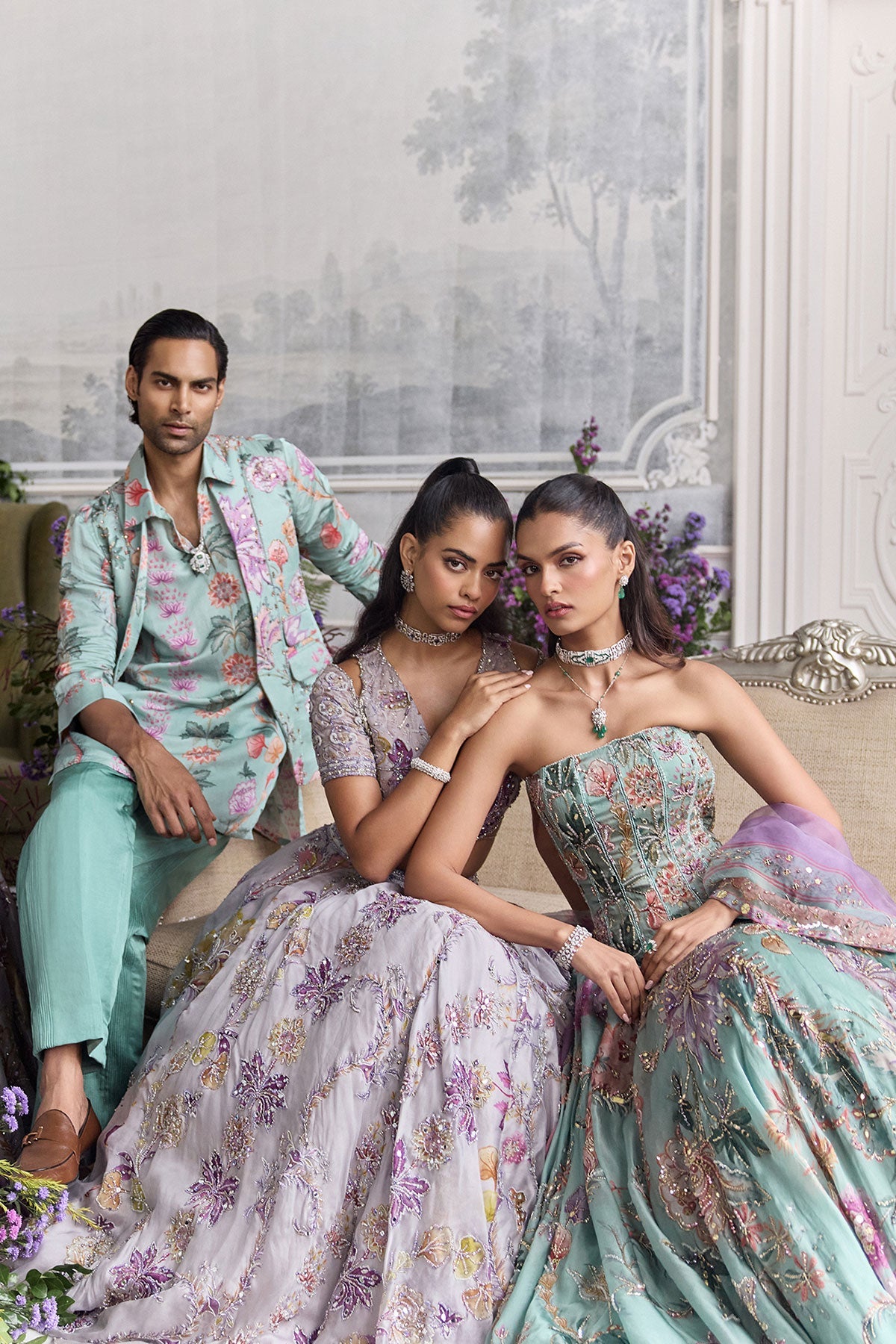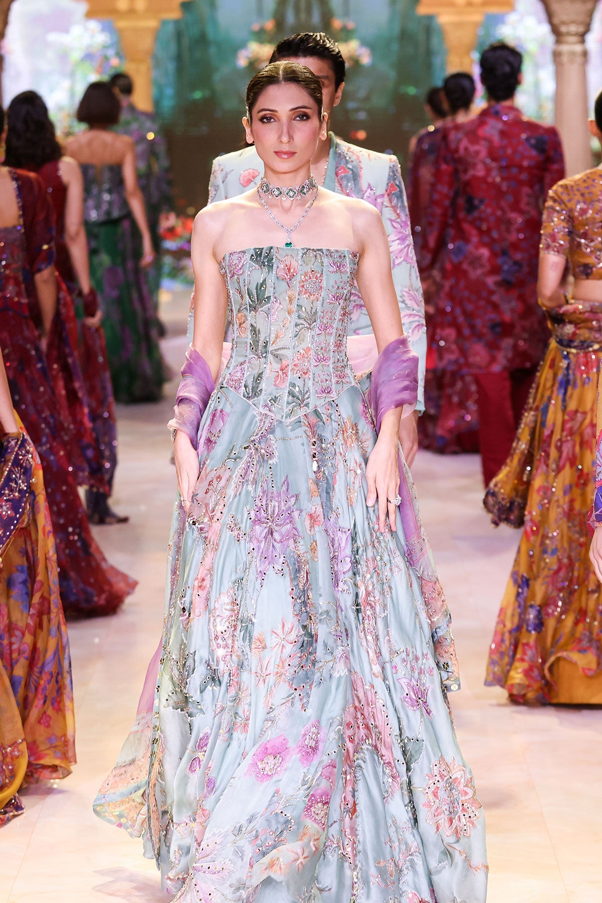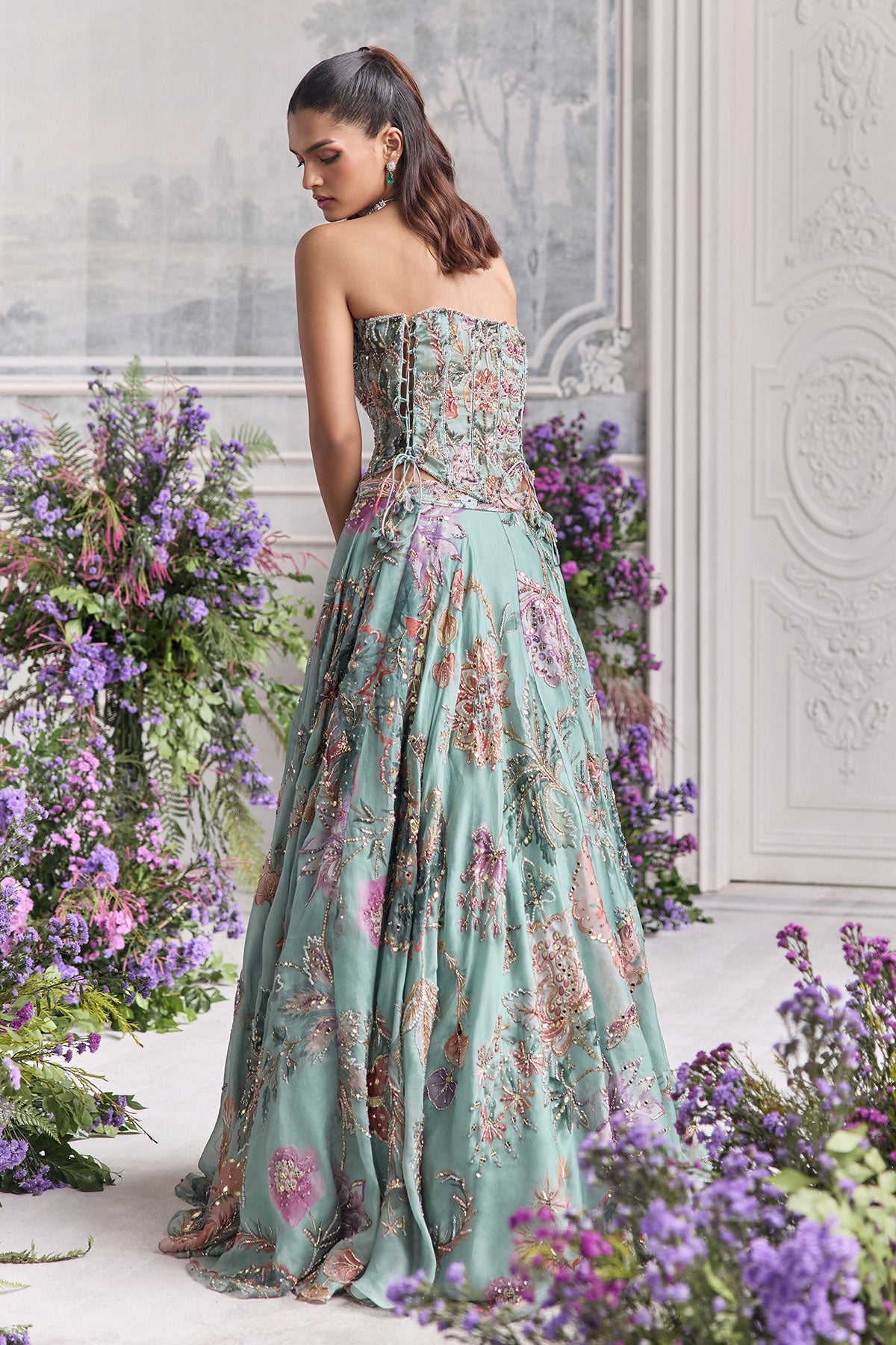 'Ilana' is from Fanah collection by Mahima Mahajan. EMBROIDERED CORSET WITH HEAVY EMBROIDERED LEHENGA PAIRED WITH DUPATTA