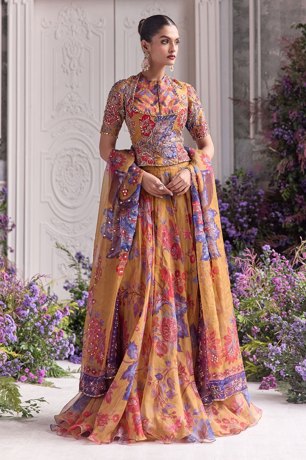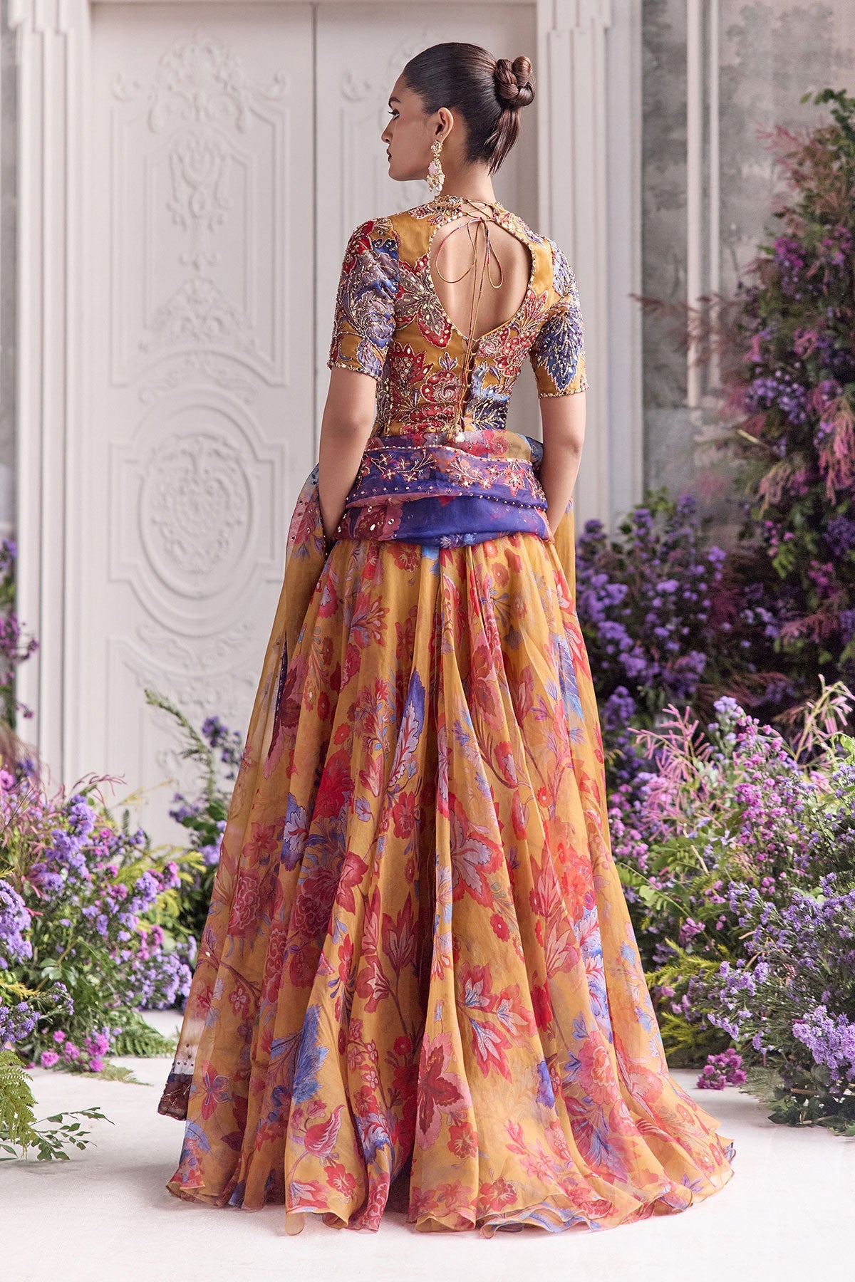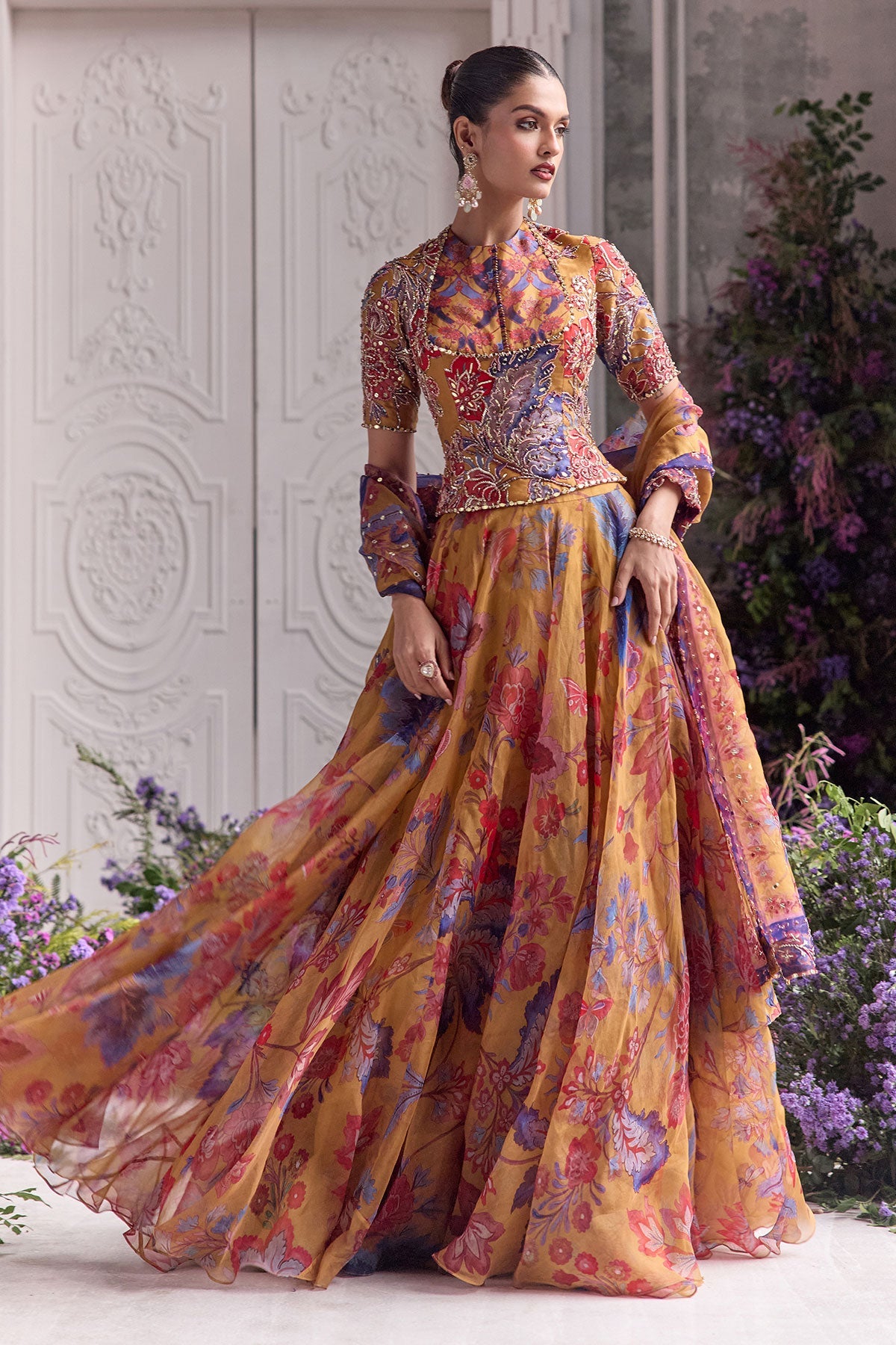 MATKA CUT HEAVY HAND EMBROIDERED CHOLI PAIRED WITH EMBROIDERED DUPATTA AND FLORAL LEHENGA