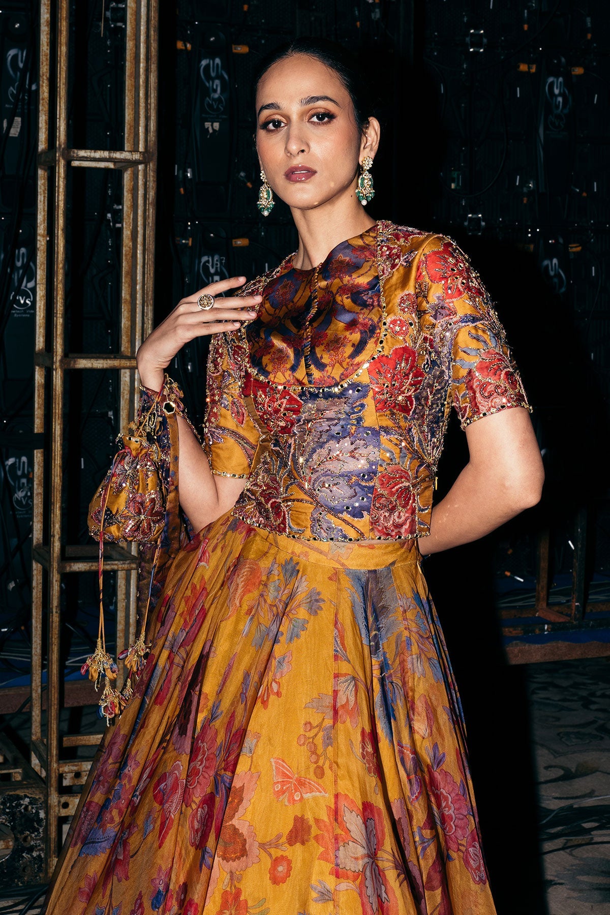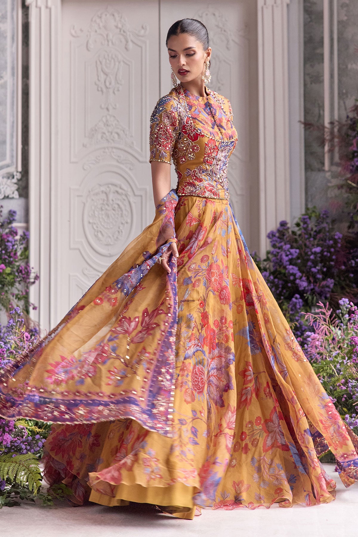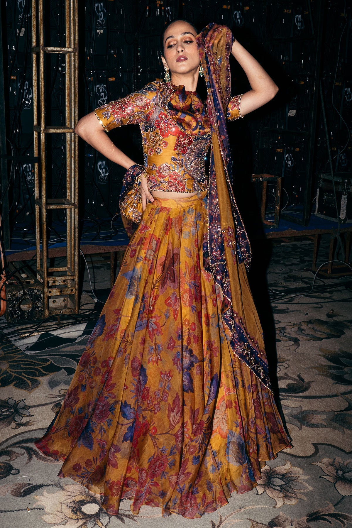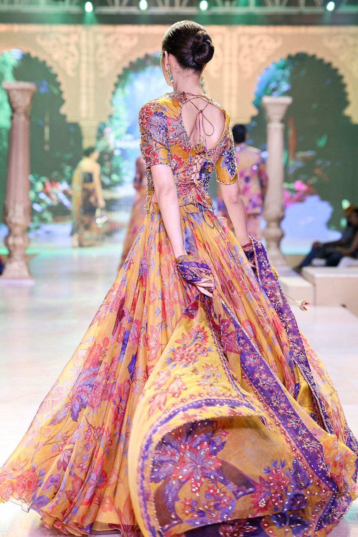 MATKA CUT HEAVY HAND EMBROIDERED CHOLI PAIRED WITH EMBROIDERED DUPATTA AND FLORAL LEHENGA