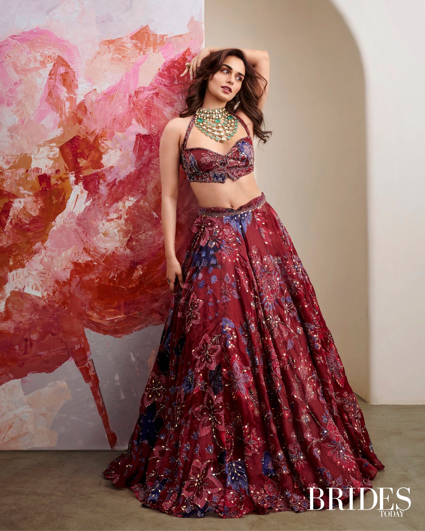 BUTTERFLY BLOUSE PAIRED WITH EMBROIDERED LEHENGA AND DUPATTA