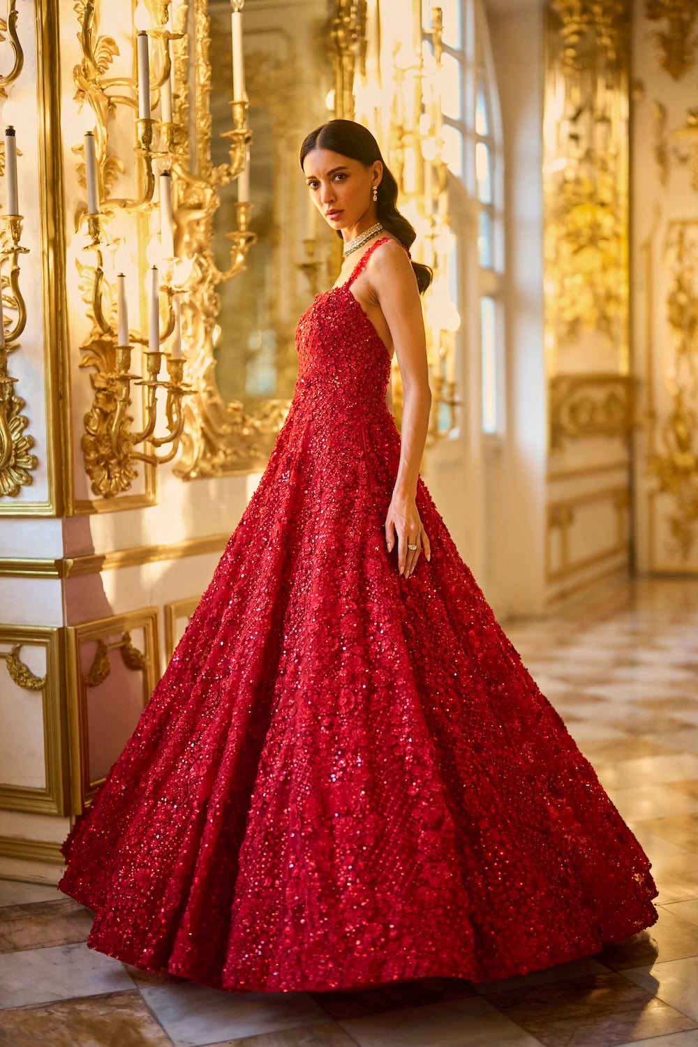 'Red Three-Dimensional Gown' is from A Theatrical Evening collection by Seema Gujral.
