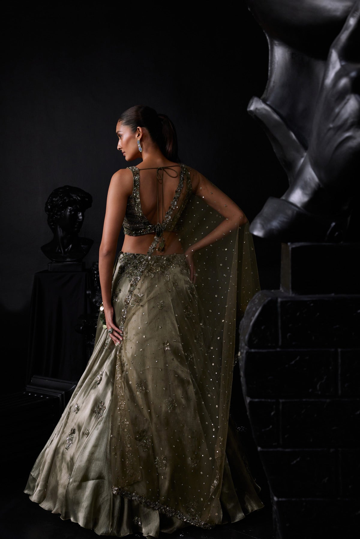 'Lumiere Lehenga Set' is from Lehenga collection by Roqa. Our stunning antique gold organza lehenga is perfect for all bridesmaids out there. It is paired with a delicately hand embroidered blouse and dupatta.