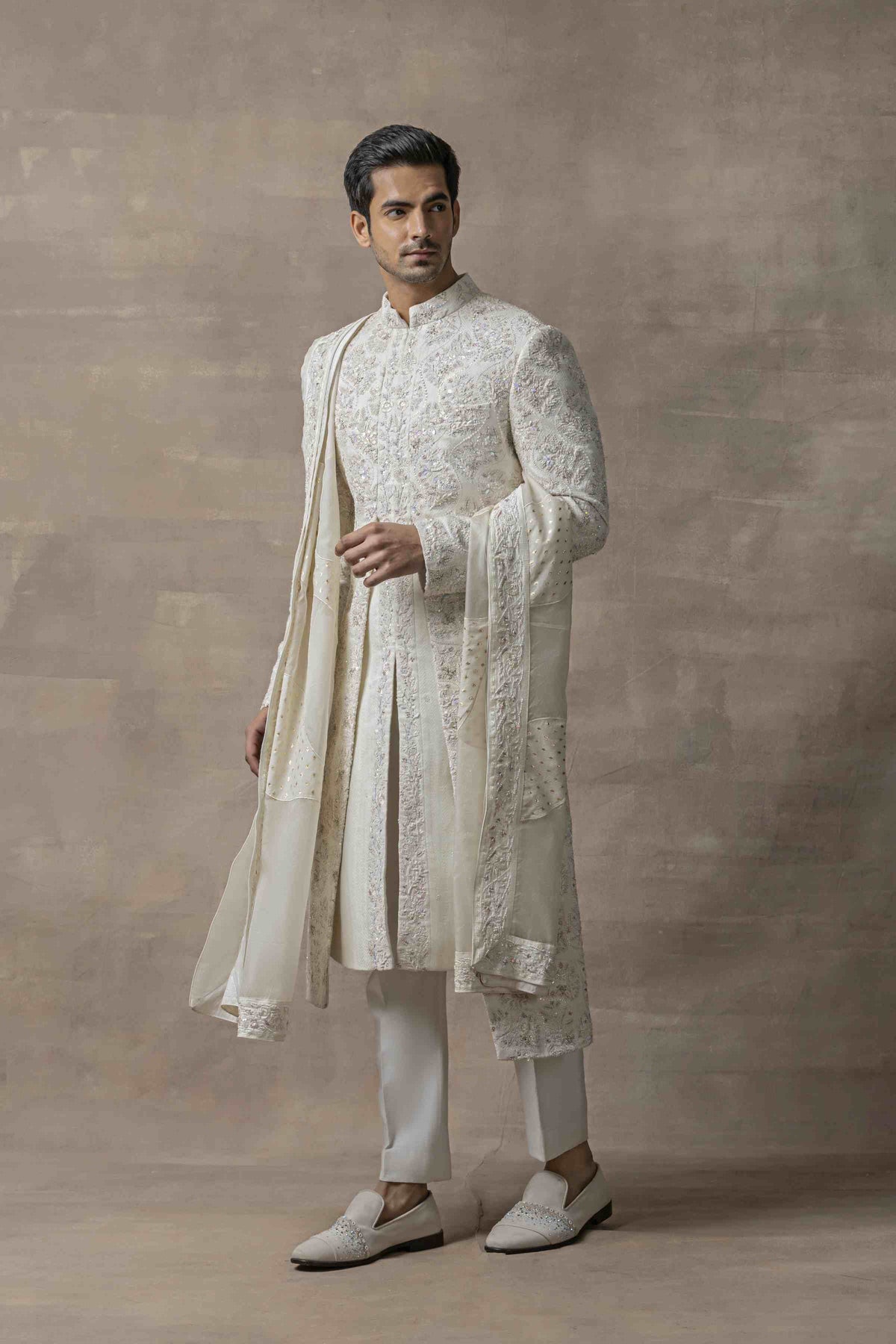 'Ivory Front Open Style Sherwani' is from Sherwani Set collection by Sarab Khanijou.