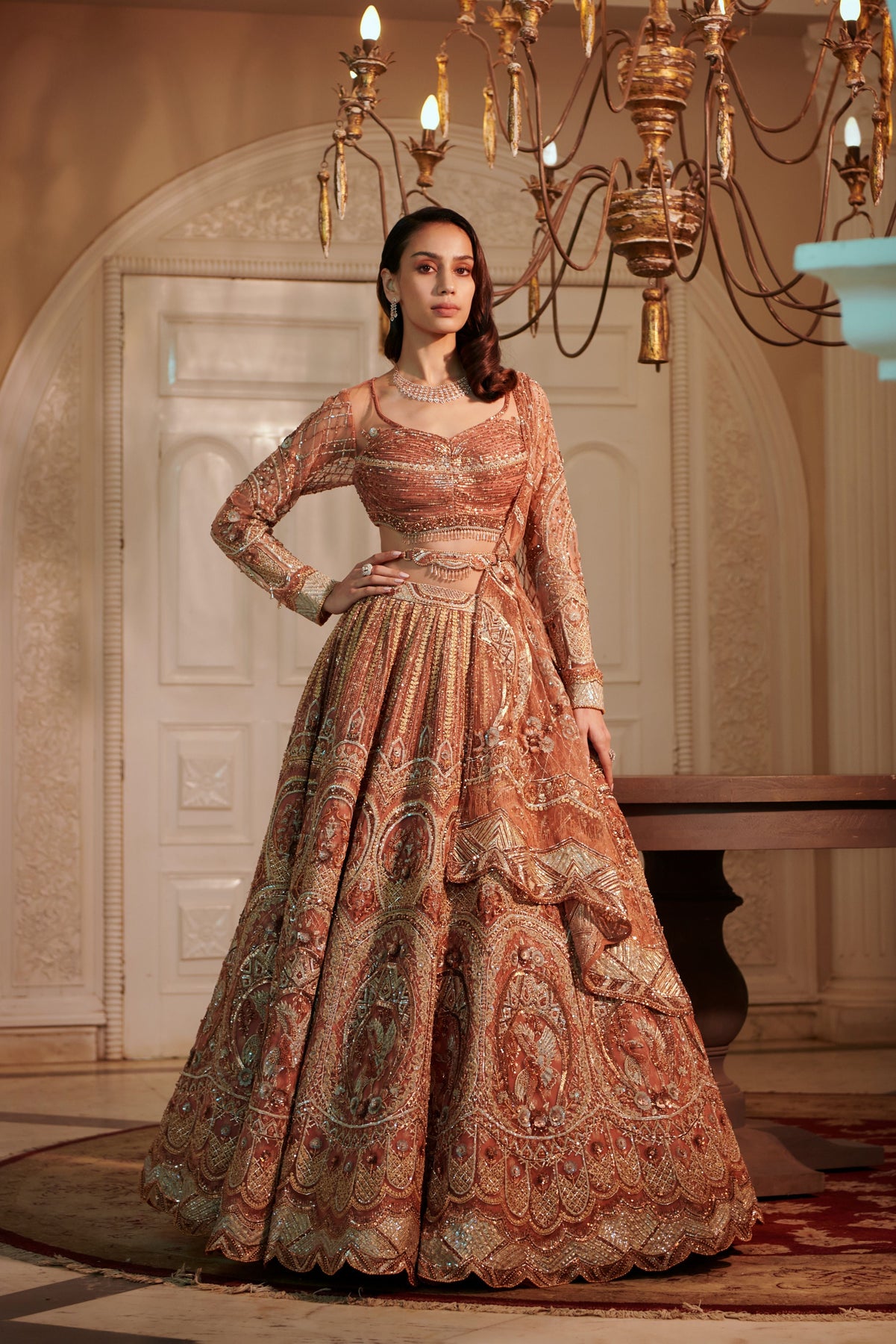 'Rust Swan Lehenga' is from On The Wings Of Love collection by Adaara Couture. This Lehenga Has Skillfully Embroidered work.It comes with Beautifully Carfted Pattern,Heavily embroidered skirt and heavily embroidered dupatta to complete the look.