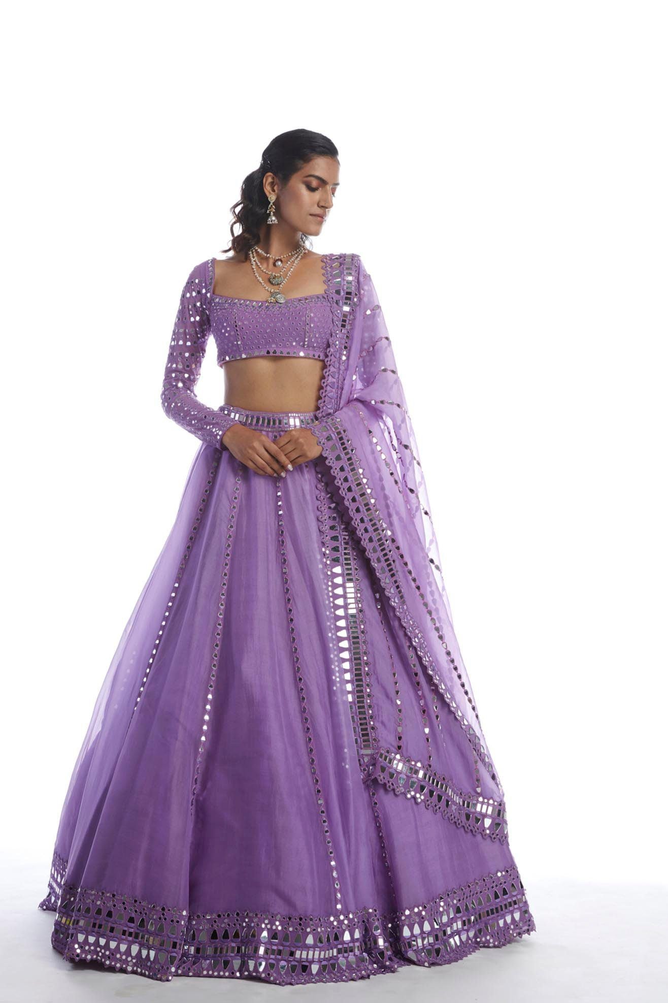 Embellished Mirror Work Blouse Paired With Broad Cutwork Mirror Silk Organza Kali Lehenga And Dupatta Fabric Used Lehenga - Organza Dupatta - Organza Blouse - Georgette Lining - Silk Blend Components Blouse Lehenga Dupatta Colour Catnip Purple Embroidery Silver Embellished Mirror Work Blouse Paired With Broad Cutwork Mirror Silk Organza Kali Lehenga And Dupatta Fabric Used Lehenga - Organza Dupatta - Organza Blouse - Georgette Lining - Silk Blend Components Blouse Lehenga Dupatta Colour Catnip Purple Embroidery Silver