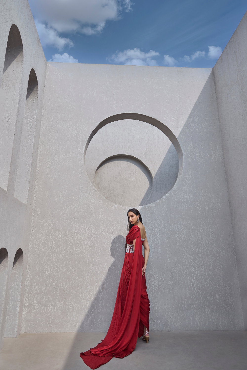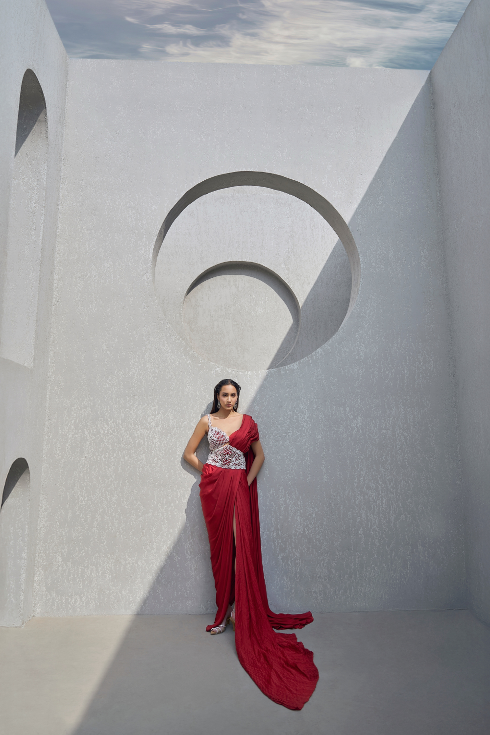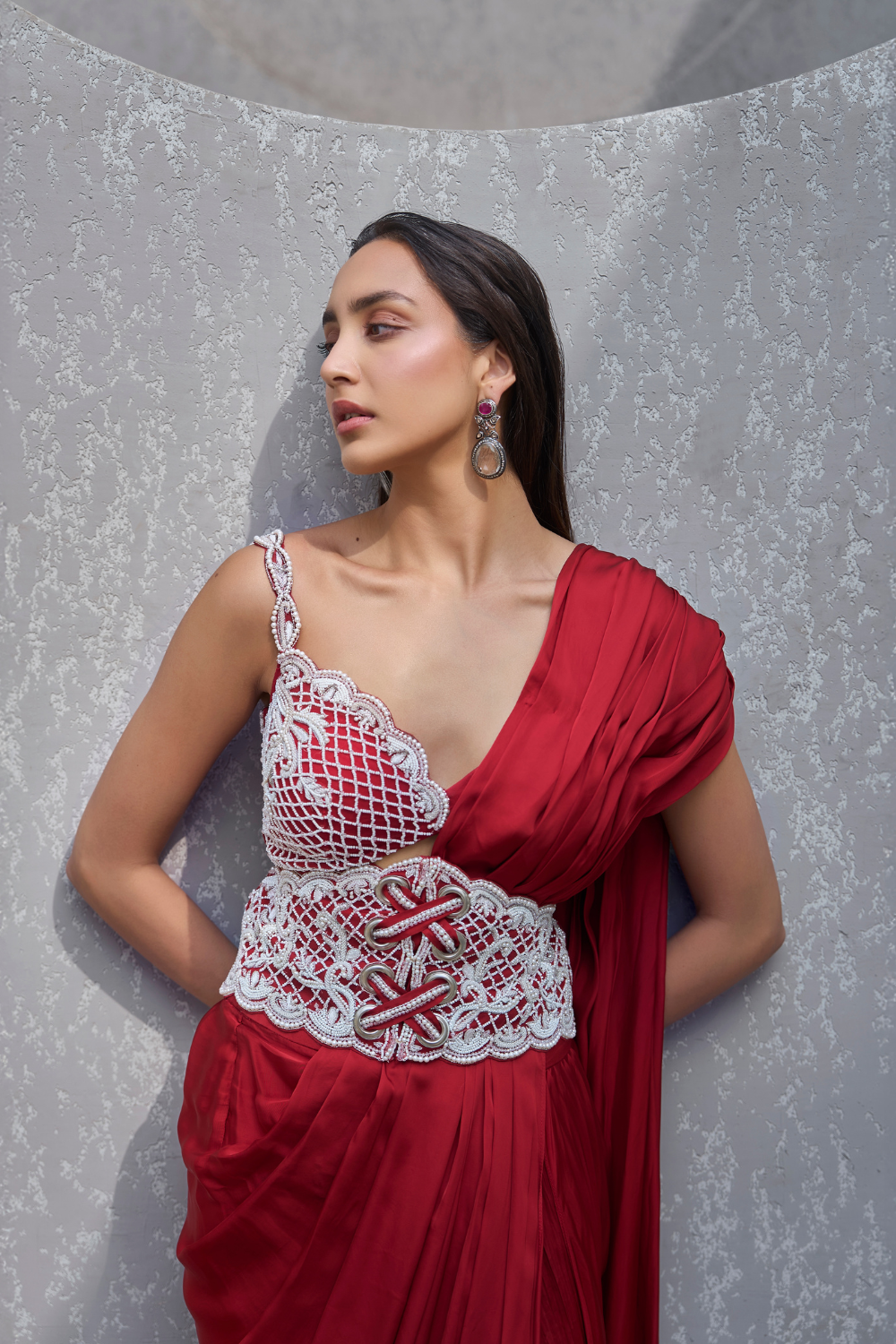 'Sienna' is from Sharara collection by Kamaali Couture. EMBROIDERED BLOUSE WITH DRAPED SHARARA AND BELT
