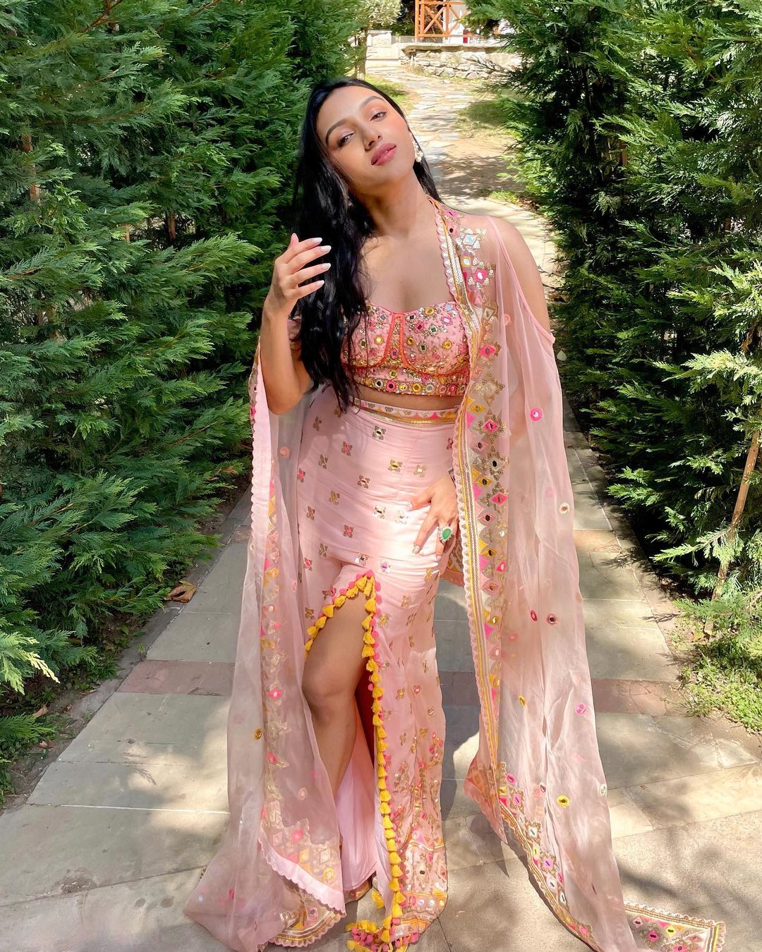 DESCRIPTION With its combination of mirror work, pompoms, tassels, and detailed embroidery, the Arari Skirt Set is a showstopper that will make you the center of attention at any festive gathering. It's a celebration of tradition and contemporary style, offering a perfect blend of elegance and playfulness for a truly memorable look. SPECIFICATIONS
