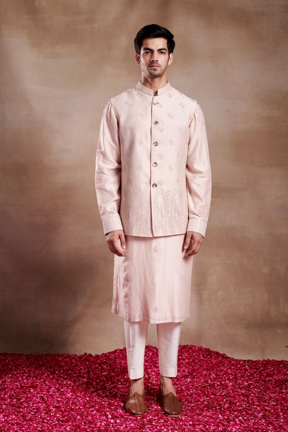 'Neer' is from Rose Garden collection by Shasha Gaba. MACHINE EMBROIDERY MIXED WITH ANCHOR WORK