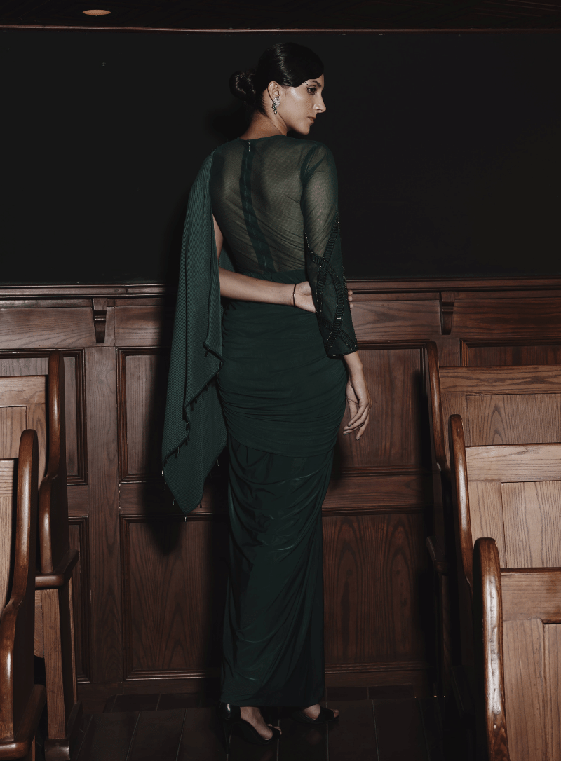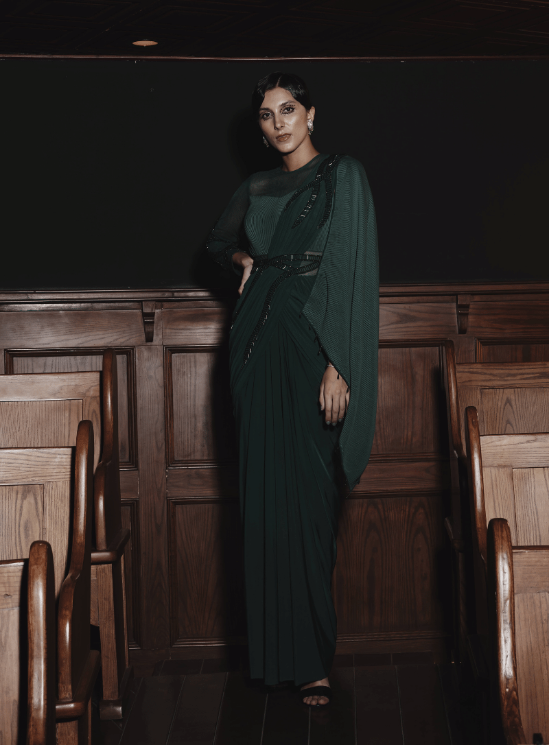 'Crinkle Drape Saree' is from Saree collection by Kamaali Couture. Product Description: Crystal embelished crinkle fabric drape sari