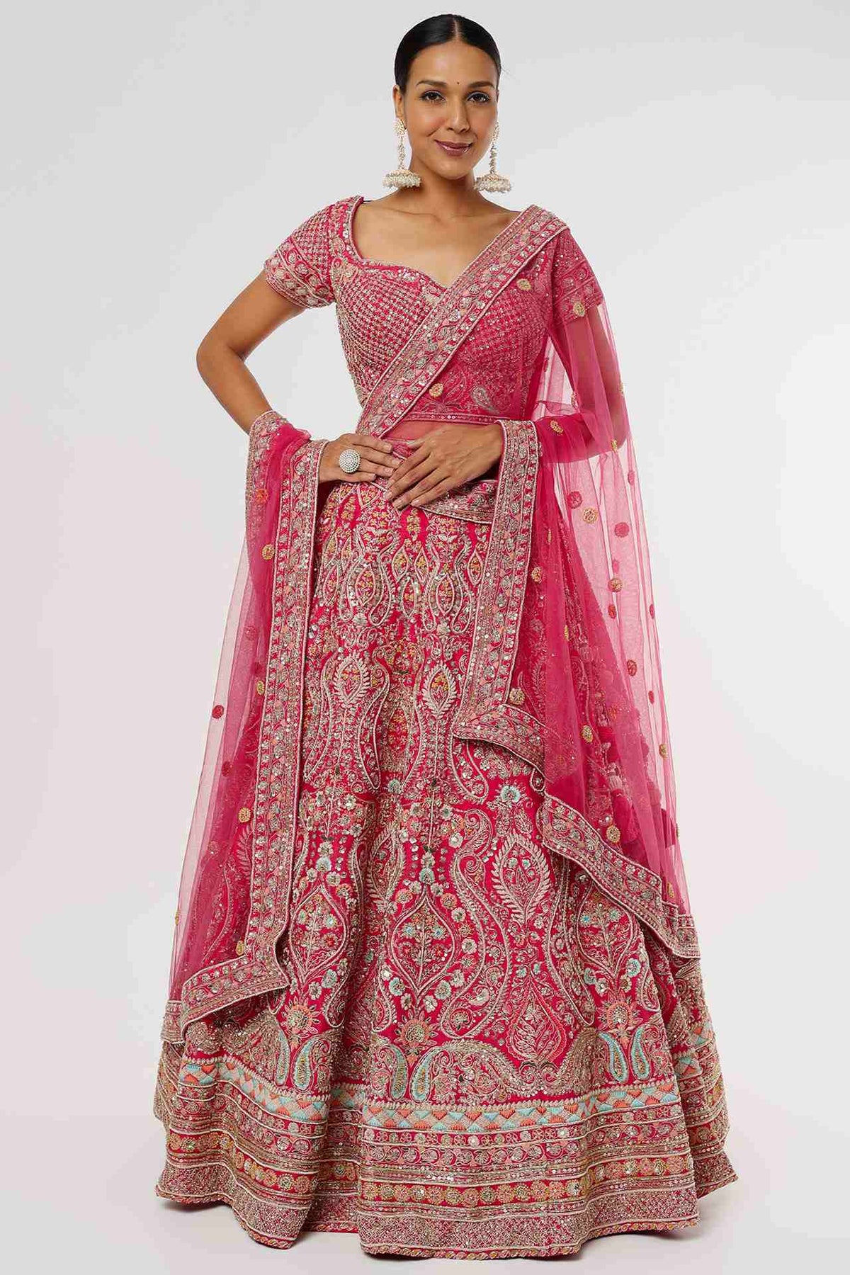 'Fuschia Silk Embroidered Meghna Lehenga Set' is from Zardoz collection by Kalighata. Featuring A Fuschia Hand-Crafted Lehenga In Raw Silk Base With Zardosi, Cutdana And Sequins Embroidery. It Is Paired With A Matching Blouse Having Hand Embroidery And A Floral Boota Embroidered Dupatta.