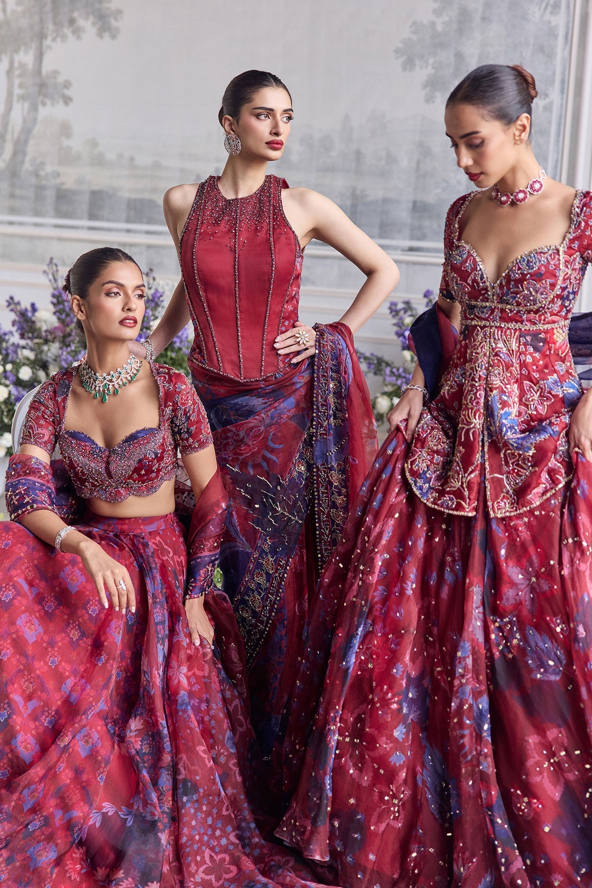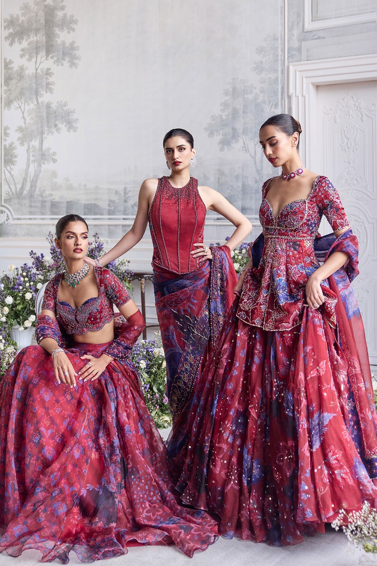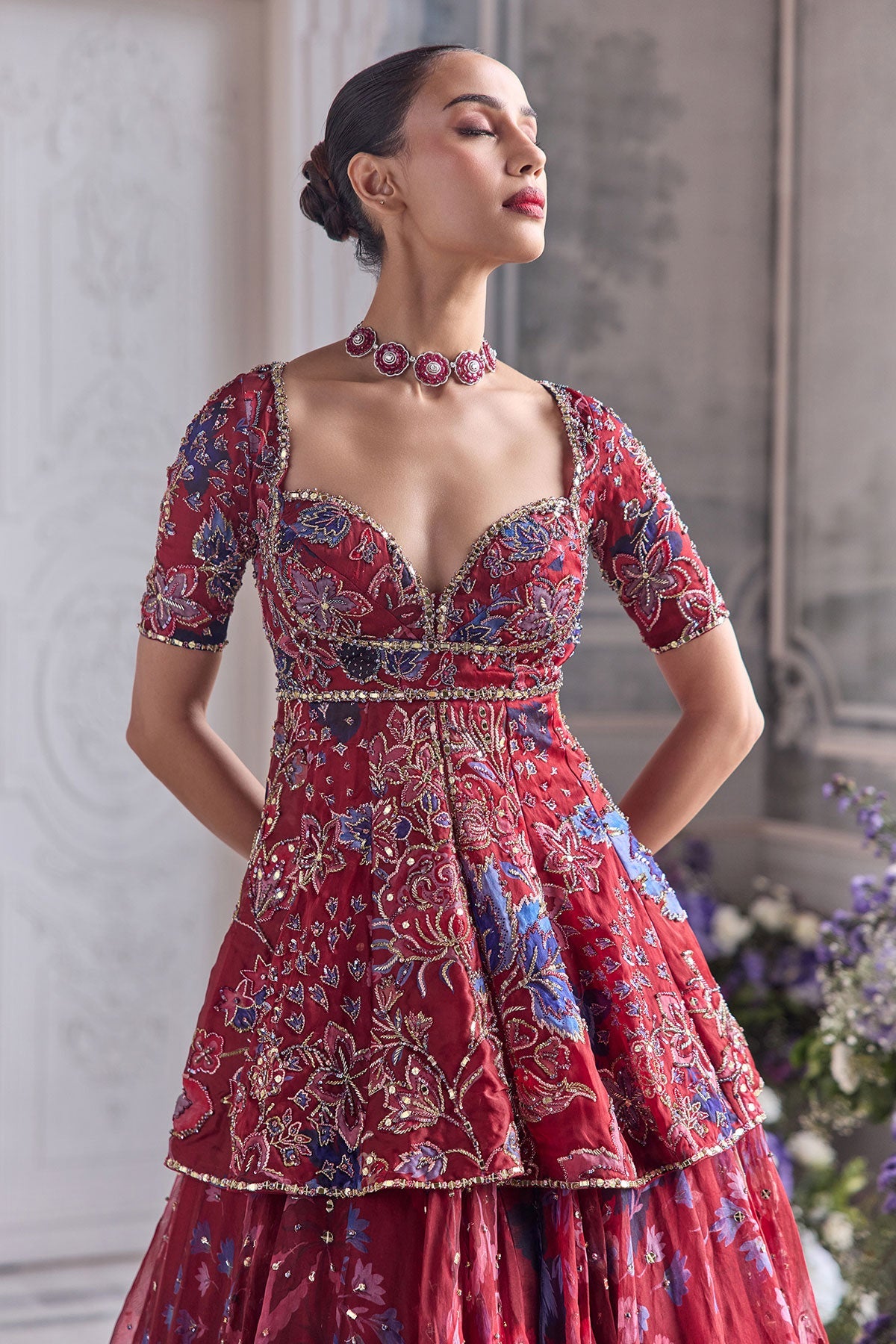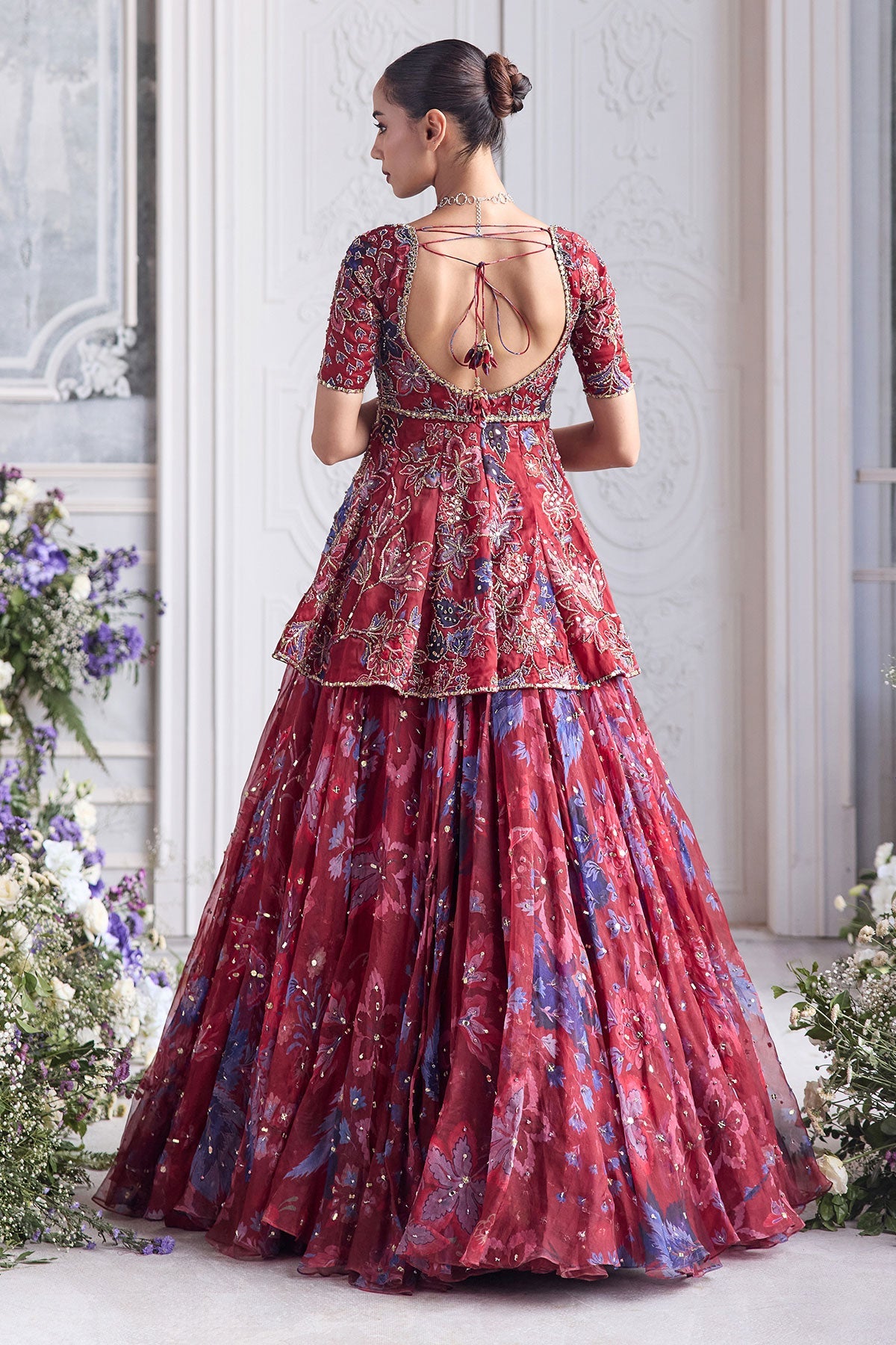 'Selina' is from Fanah collection by Mahima Mahajan. HEAVY EMBROIDERED PEPLUM KURTA PAIREDD WITH EMBROIDERED LEHENGA AND DUPATTA